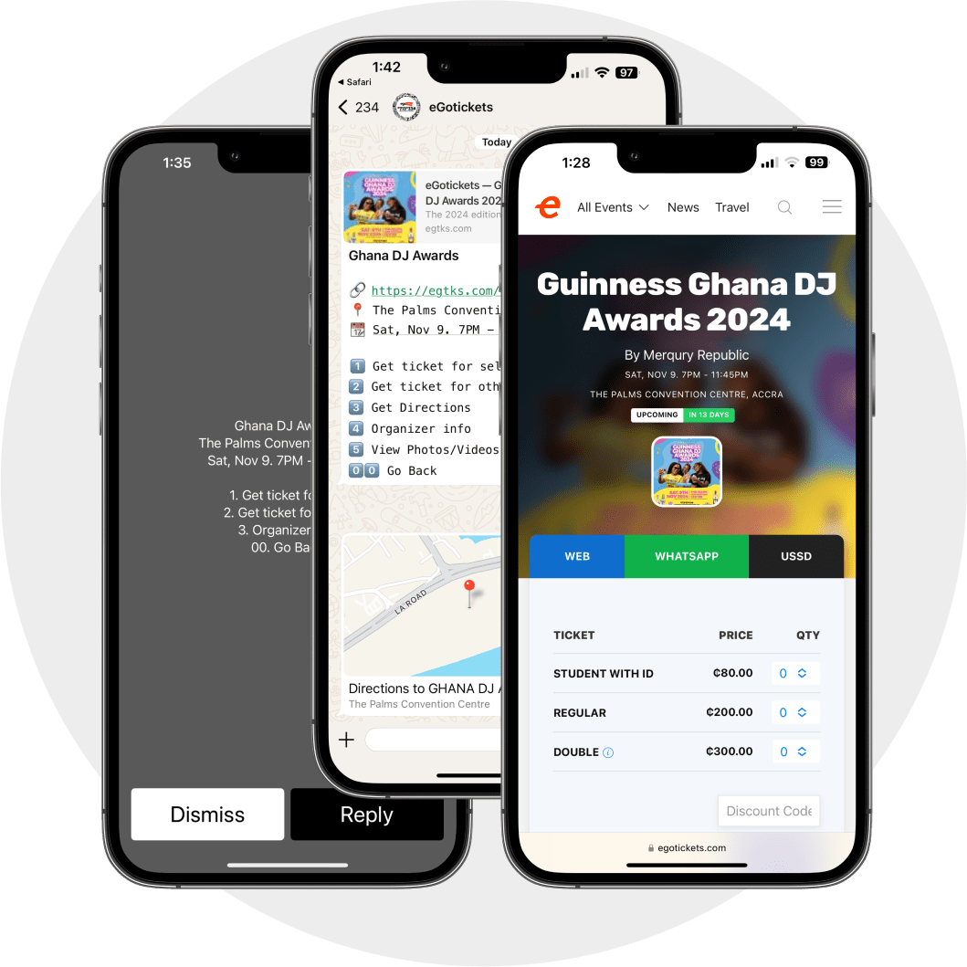 Reach your audience on WhatsApp, USSD, websites, mobile apps, and partner platforms. One event, unlimited channels.
